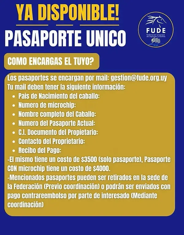 Los pasaporte se encargan por mail: 📩pasaportes@fude.org.uy